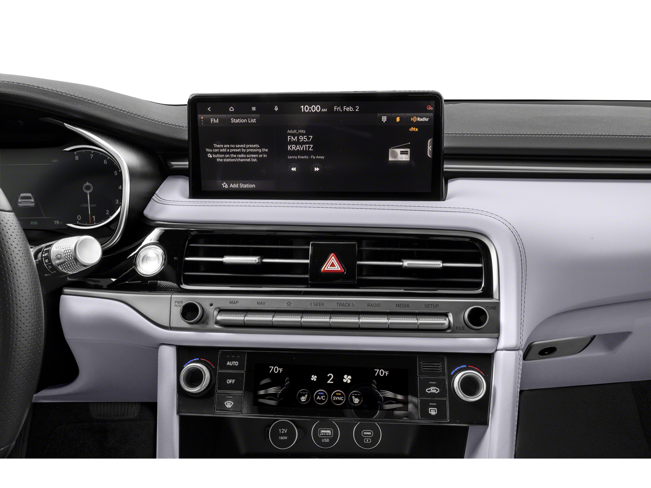 - Radio: AM/FM/SiriusXM/HD Audio System -inc: 6 speakers, 5th generation navigation system w/10.25" touchscreen, dynamic voice recognition, connected routing, over the air updates, Android Auto and Apple CarPlay, SiriusXM Radio w/90-day trial subscription (not available in Alaska or Hawaii), Genesis connected services, Bluetooth® hands-free phone and audio streaming system